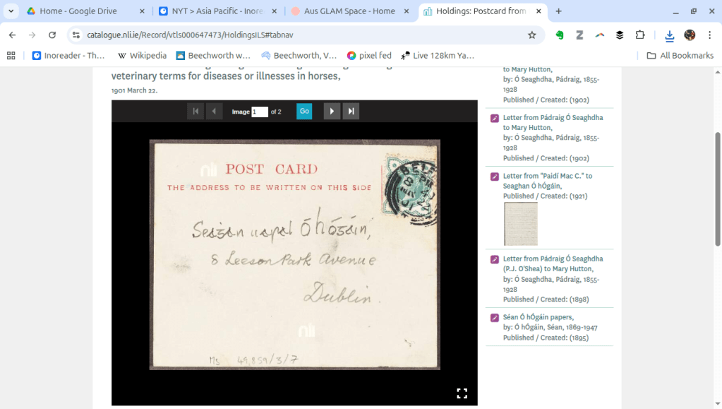 Search any listing of nineteenth century postcards for sale on ebay, especially non pictorial ones, you’ll come across examples written in pencil, usually with fairly mundane messages, confirming the size of a cabinet, or ordering a bucket of nails for use on the farm.