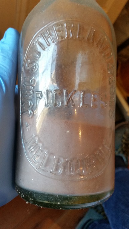 It’s also possible that the substantial nature of the pickle jars that made them attractive to old Mr Dow to store his materia medica also made them attractive to the housewives and housekeepers of Federation period Australia – something in a jar you could reuse several times was probably a more attractive purchase than something in a lighter jar that might crack when being sterilised for reuse …