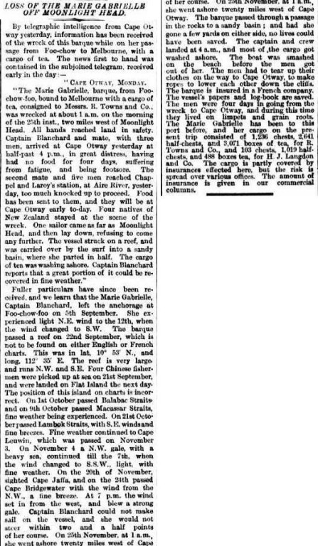 In the case of the Marie Gabrielle it seemed at firts that everyone survived despite being trapped on a wild rough coast in what was then very isolated and remote country