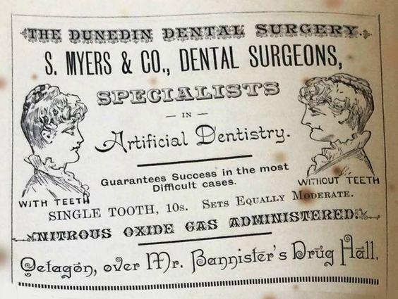So the use of Nitrous Oxide in 1880’s Dunedin is not as unusual as it might first seem – it looks as if New Zealand dentists were as advanced as their UK counterparts, and possibly even a little ahead of the pack …