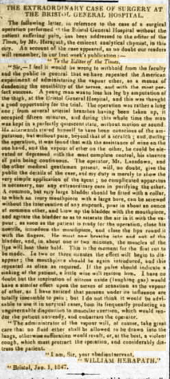 (Herapath’s letter was originally sent to the Times and is republished in numerous publications).