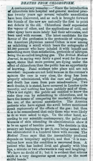 I didn’t expect the situation to be much different and initially that seemed to be the case – there was an article expressing concern at the risks of chloroform in the Cardiff and Merthyr Guardian of June 1868