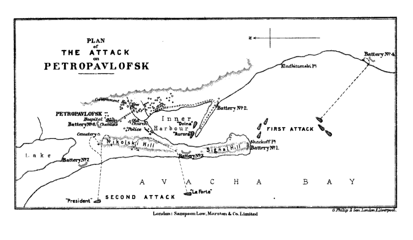 Perhaps because it was a joint Anglo-French operation there was an officer of Polish heritage among the French naval officers who could speak some Russian – I’m waving my hands here – and his transliteration got into the official reports of the time. I don’t know, I’m guessing, but it’s odd given that a near contemporary English language map gives it as more reasonable Petropavlofsk.