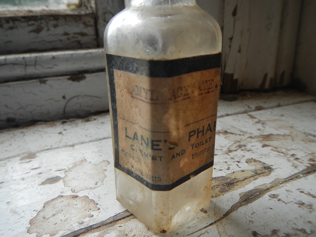 it’s from Lane’s Pharmacy in Wangaratta. It’s difficult to see from the picture but underneath the Lane’s Pharmacy line on the label it reads Chemist and Toilet Parlour.