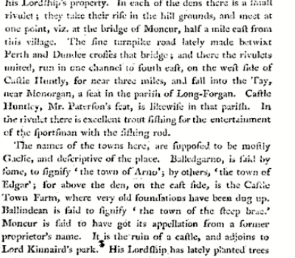 which sort of vaguely supports my guess about there having been a proprietor ( be they tenant or landowner) named Moncur sometime before the mid 1500’s when the Kinnairds assumed proprietorship …