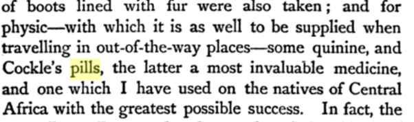 He also has another claim to fame however – Cockle’s Pills which he took with him as part of his medicine chest on his adventures