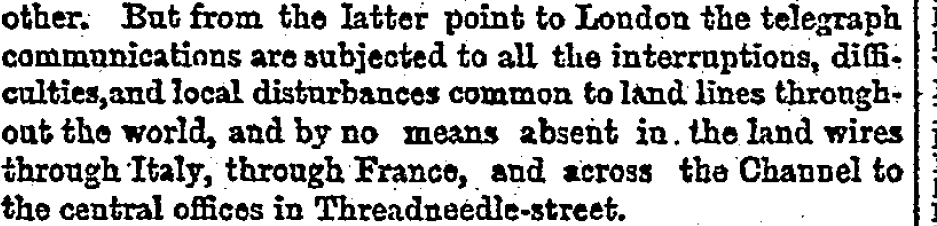 But the thing which really amazed me about the reports of the construction of the link was the sheer amount of geekery in the reports, detailing the construction of the cables, the number of cores, the insulation used – there is even a book published at the time The Ocean Telegraph to India, detailing the construction of the link.