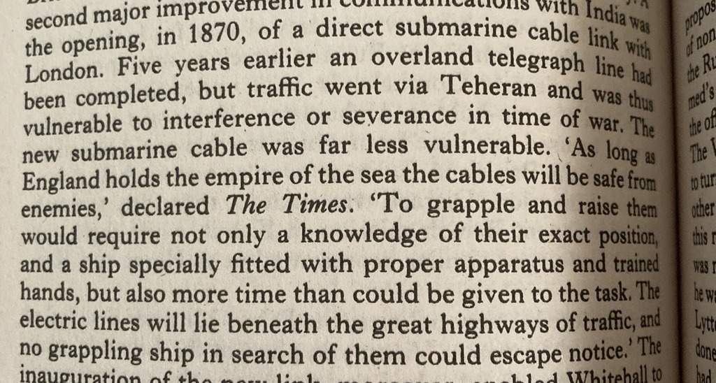 And by 1870, and remember that this was also the time of the Franco Prussian war, Britain was increasingly concerned about the security of its communication links to India