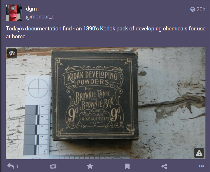 And suddenly, years later, being able to recognise the equipment, knowing about film brands and film sizes, has suddenly been very helpful in identifying and documenting items.
