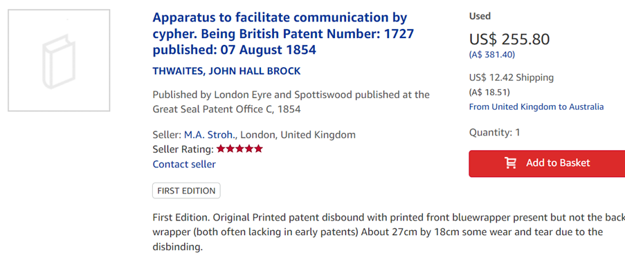 In 1845, Babbage realised that Vignère ciphers could be cracked mathematically, but did nothing with the idea until, in 1852, John Thwaites, a Bristol dentist, claimed to have produced a new secure cipher
