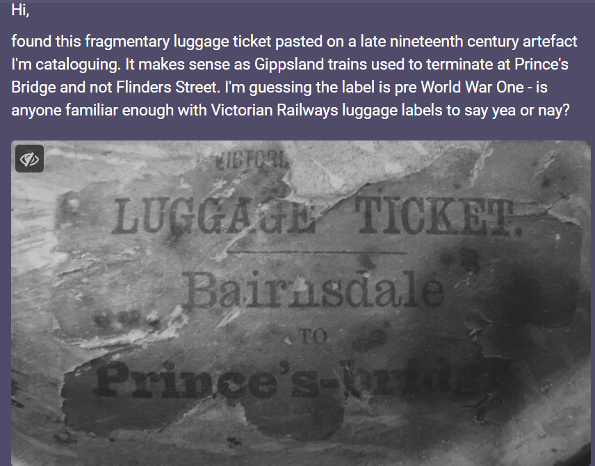 So, we can say that someone, and we don’t know when, checked the box on a train from Bairnsdale to Melbourne.