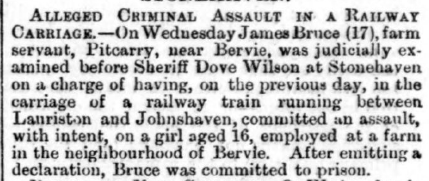 When I went down an internet rabbit hole about crime and nineteenth century railway carriages, I mentioned that I had come across a report of an incident on the Montrose to Bervie line in 1886.