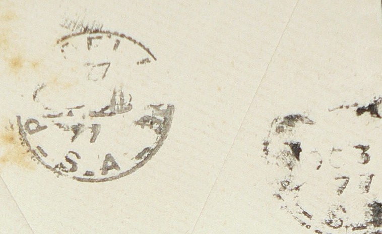 Unfortunately the Port Lincoln postmarks are pretty much illegible, but I could convince myself the rightmost reads OC 3 77, suggesting that the letter had reached Port Lincoln four or five days after being posted…