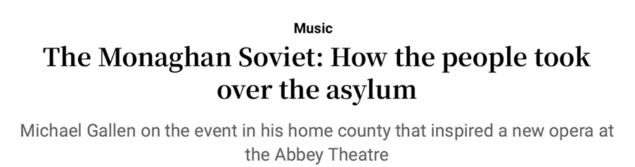 In January 1919 the staff of the Monaghan Lunatic Asylum, in protest at poor working conditions, formed a workers council and occupied the asylum, hoisting the red flag on the roof, and barricading it with the assistance of some of the less disturbed inmates.