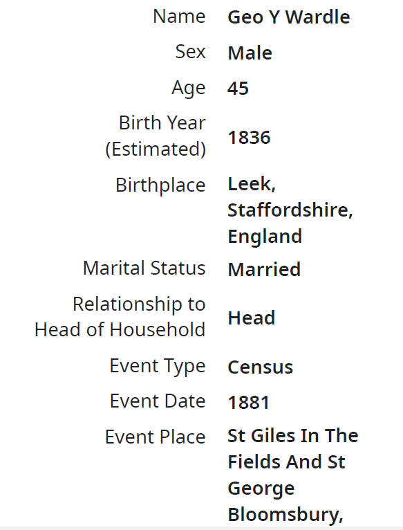 But I hadn’t been able to find any trace of her, and then I had a brainwave, search for George Wardle and there he was in the 1881 census