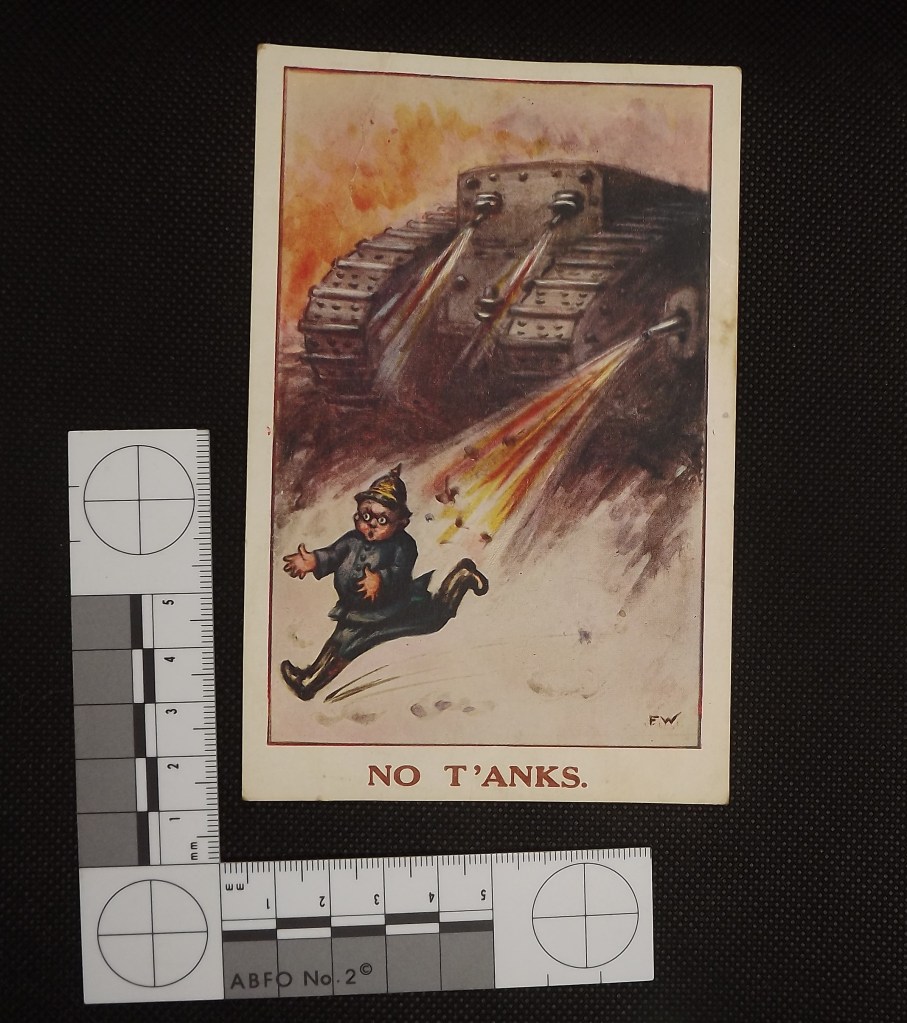 However, my gut feeling is that the card dates from the winter of 1917, simply because it was not until the British began using the Mark IV tank that tanks began to perform effectively…